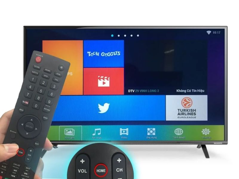 Bước 1: Trên remote, bạn nhấn chọn Home để vào giao diện chính của tivi