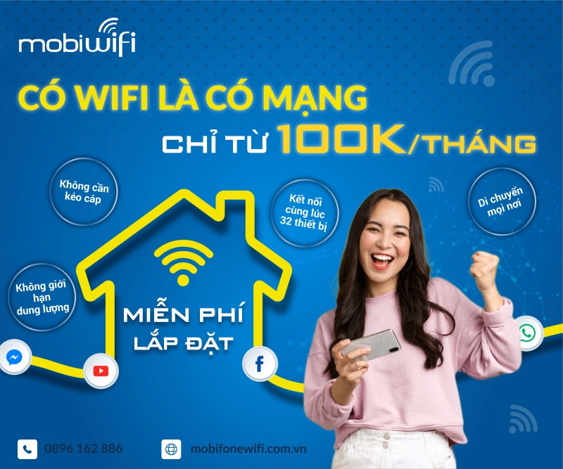 Nếu bạn không muốn dùng Wifi chùa, muốn sở hữu một mạng wifi không dây mạnh mẽ không lo bị gián đoạn thì bạn có thể tham khảo thêm gói MobiWifi, giá siêu rẻ, truy cập mạng siêu tốc.