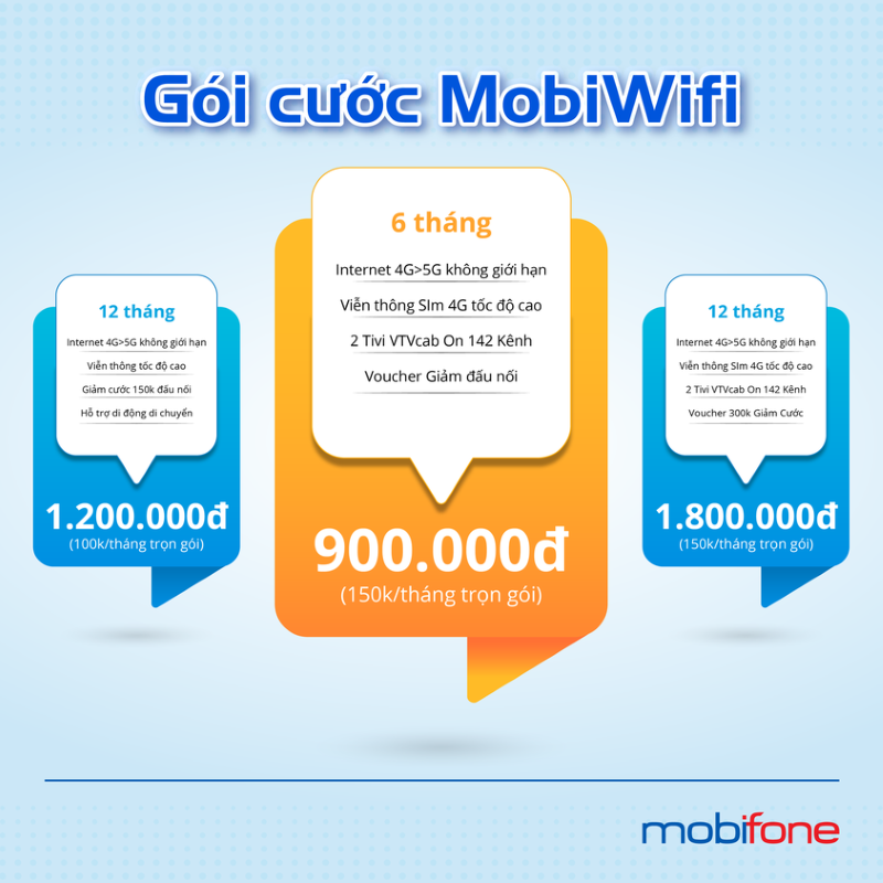 Mobiwifi là dịch vụ cung cấp wifi tốc độ cao, không giới hạn dung lượng của nhà mạng Mobifone. Sản phẩm Mobiwifi của Mobifone công nghệ tích hợp viễn thông, truyền hình, Internet,...giúp gia đình bạn tối ưu chi phí sinh hoạt hàng tháng. Với giá thành siêu hấp dẫn, chỉ 150.000/tháng là bạn có thể thoải mái sử dụng wifi tại nhà.